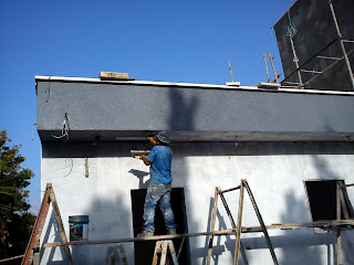 ביצוע פיגומים בחזית , ניצלתי את הפיגומים לביצוע בריקים בעמוד החזיתי בבית עד למעלה.