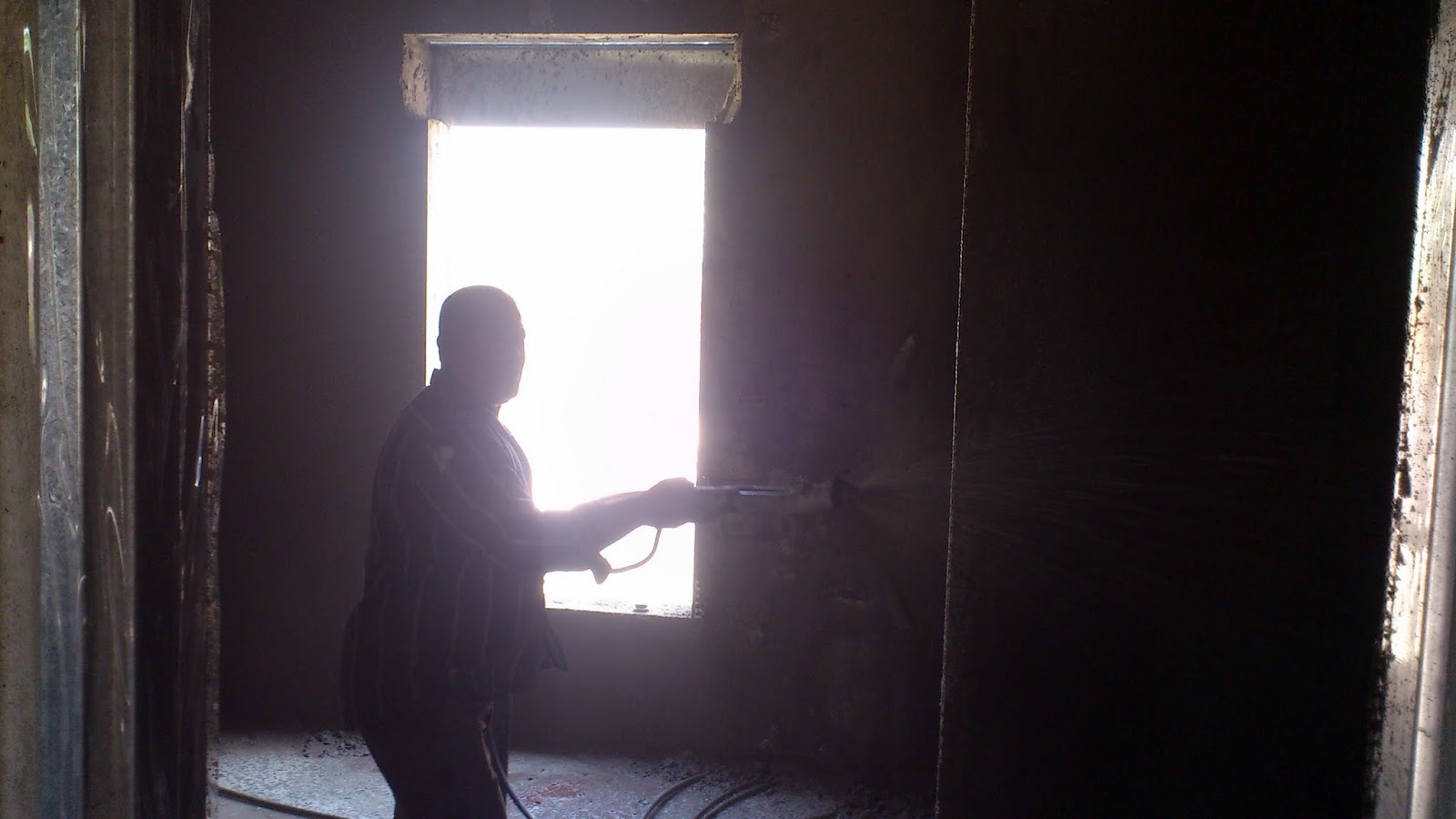 ביצוע שכבת שפכטל ראשונה כמובן לאחר שיפשוף הקירות.