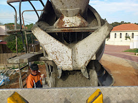 טוב , הגיע המערבל הגיע מספק חומרי הבניין שלי, אני והראל עלינו על המשאבה כדי לבדוק ש כ ל הבטון יוצא ולא נשארות שאריות במערבל