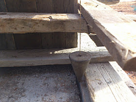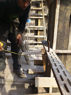 הפועלים מחזקים את הטפסנות ע”י קורות עץ אופקיות