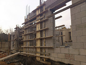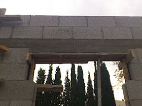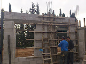 ביצענו טפסנות ויצקנו את חגורות הבטון העליונות מעל החלונות . המשיכו את שורות הבלוקים מעל החלונות עד לגובה 280.