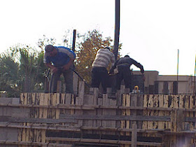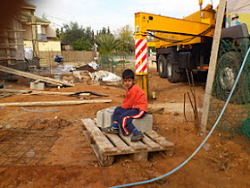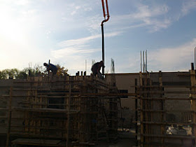 היום הוזמנה יציקה לשעה 13:00 , אז לאחר שביליתי עם בני הראל חזרנו ישירות לשטח עם סופגניות טעימות לפועלים והמתנו למשאבה ומערבלי הבטון.